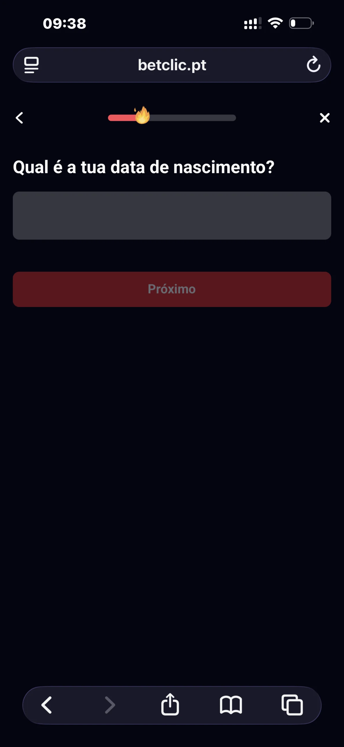 O processo de registo na Betclic não só é extremamente simples, como poderá ser efetuado numa única secção. Divide-se em três fases, nas quais terás de completar um formulário com as tuas informações pessoais e financeiras. Em apenas um minuto, terás criado a tua conta de utilizador: